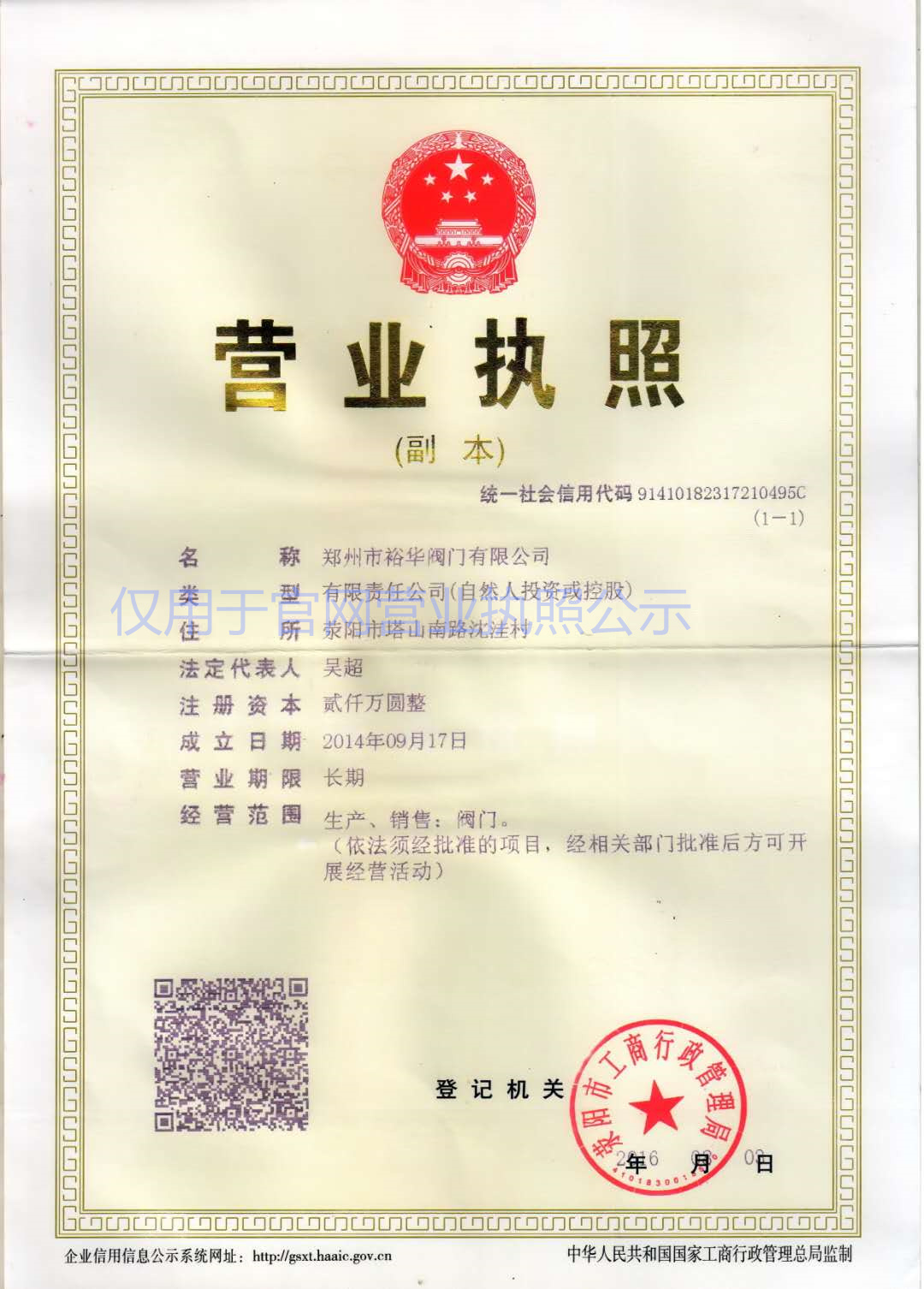 > > 營業執照公示